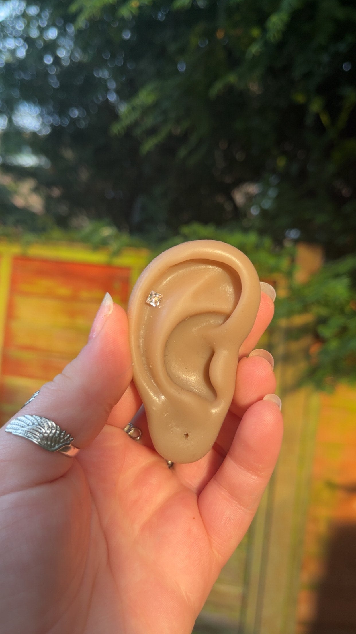 These have a twisting flat back closure, so are perfect for cartilage and helix piercings, but work in lobe piercings also!